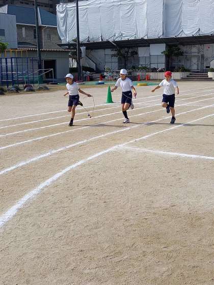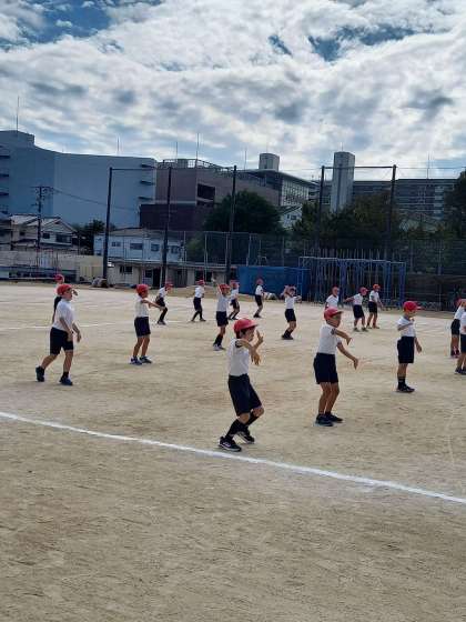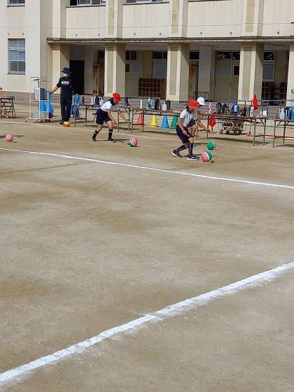 ラジオ体操後、ボールとなわでバックレースをしました。最後は、ダンス「ハロハロ」を楽しく踊りました。