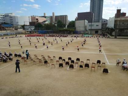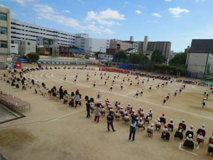 マスクをして静かに見ています。応援はできないけどその分大きな拍手で盛り上げています。