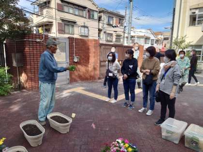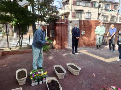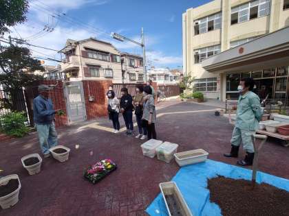 本日PTA体育緑化委員会の方が苗、球根植えにきてくれています。