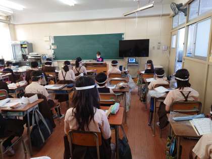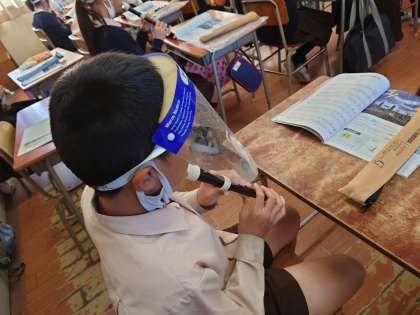 5年生が音楽を学習していました。星笛を練習していました。リコーダー、きれいな音色でした。