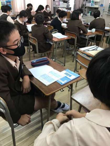 5時間目に1組、6時間目に2組で『ハングル講座』の出前授業を受けました。