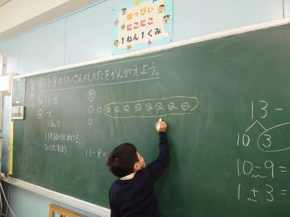 一年生が算数をしていました。11−8の計算な仕方を考えていました!