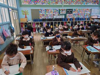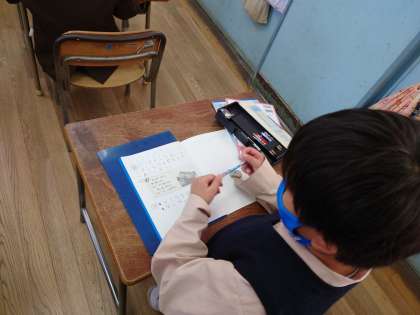 一年生お隣も15−8の計算の説明を考えていました。10から8を引いて2、5と2で7。8を5と3に分けて10引く3で7。2つのやり方のやりやすい方で計算します。