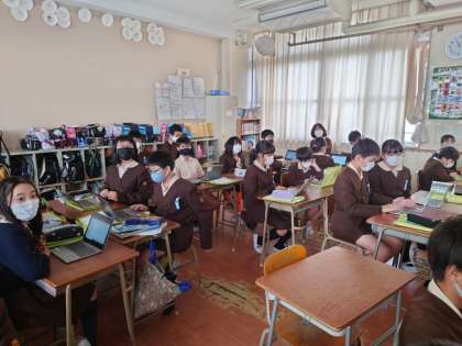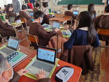 6年生がプレゼンを作成していました。出来上がりはお楽しみです。