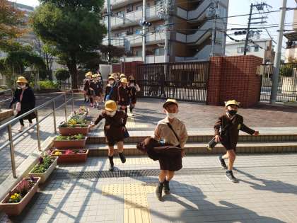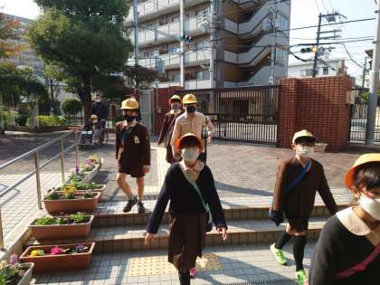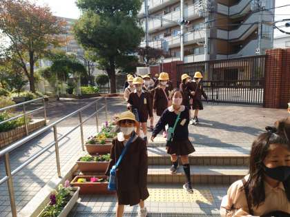今日は学級ごとに見学しています。まずは1組が帰ってきました。