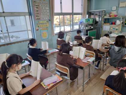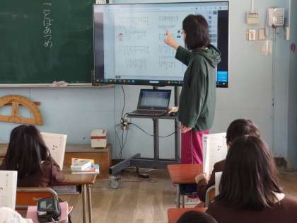 2年生が国語をしていました。言葉の広場から言葉を集めて文を作っていました。