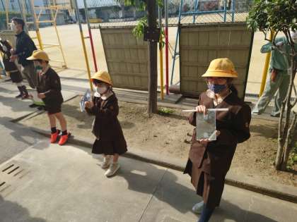 天気が良かったので、3年生が鏡を使って反射の学習をしていました。