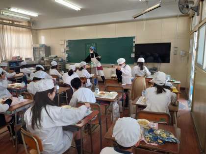 今日のメニューの柿は天候不良のため、ぶどうゼリーに変更になりました。