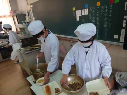 今日は一年生がオリエンテーリングの続きで校外学習なので2〜6年生で給食です。