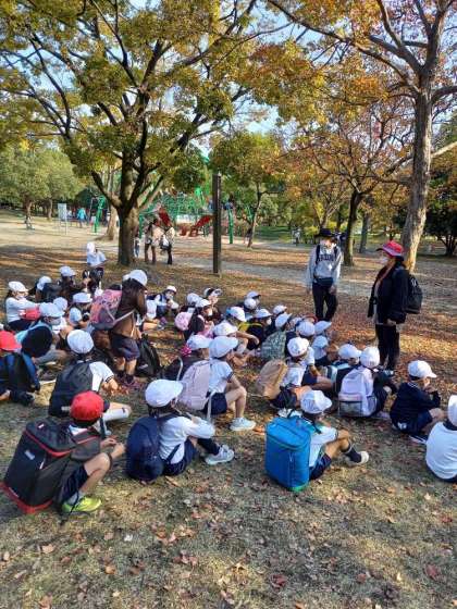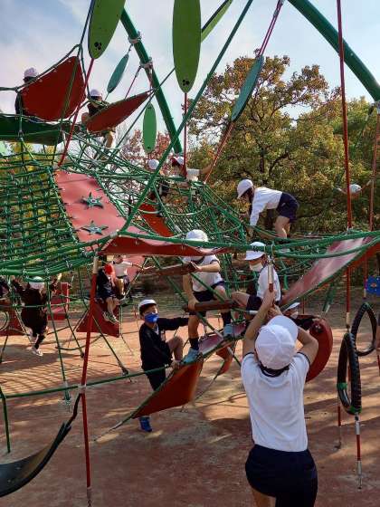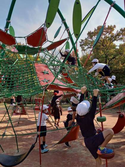 遊具のある場所に来ました。新しい大きな遊具で遊んでいます。