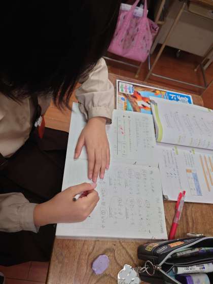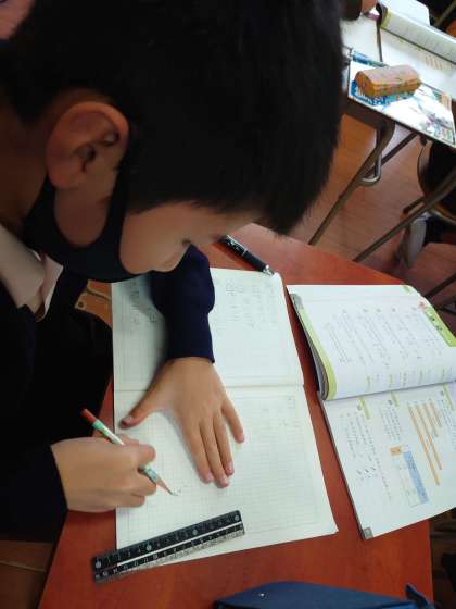 5年生が算数をしていました。分数の学習もいよいよ大詰めです。
