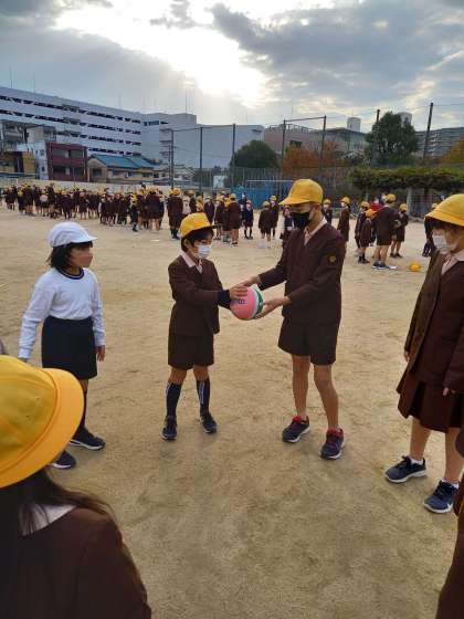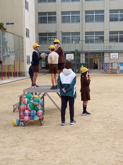 今日の児童集会は「ごろごろドッカン」ゲームでした。ボールを班の中で回して、ドッカンと言われた時にボールを持っていた人がアウトになります。みんなハラハラドキドキしながら楽しみました。