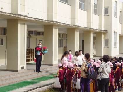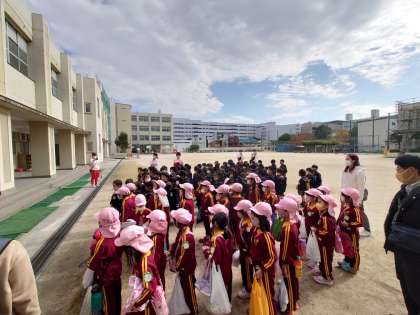 幼、小連携地域の幼稚園、保育園のみなさんが学校見学にやってきました。教室や作品展を見て回ります。