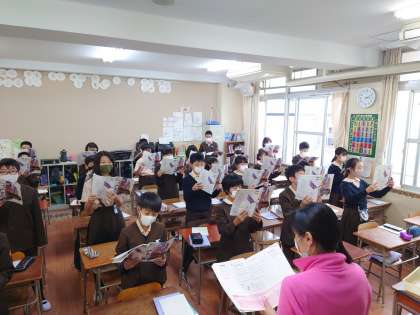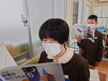6年生が音楽をしていました。とてもきれいな歌声でした。写真では音声が聞こえないのが残念です。