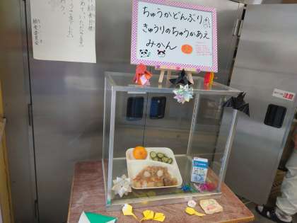 今日の中華丼は豚肉、白菜、玉ねぎ、たけのこなど具だくさんです。