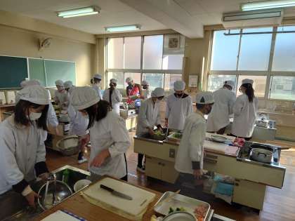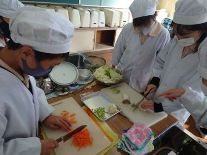 2時間目家庭科室で5年生が調理実習をしていました。詳しい内容は学年のホームページで後で掲載するそうです。