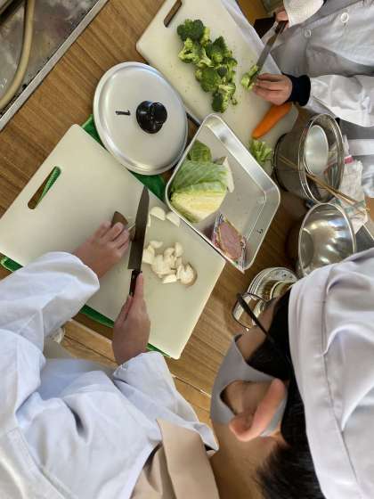 5年 調理実習 ゆで野菜サラダ 2組 2