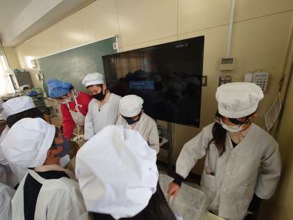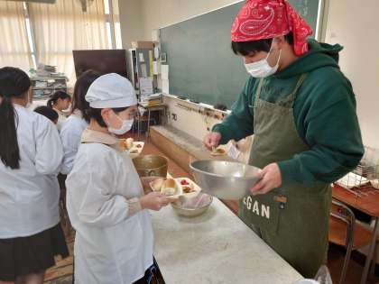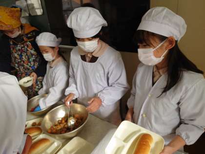 肉団子のスープには、押し麦、にんじん、ほうれん草が入っています。