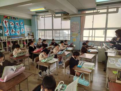 2年生おとなりでは鍵盤ハーモニカや木琴で聖者の行進を演奏していました。