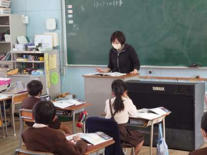 3年生が社会をしていました。前回は消防署、今回は警察署の仕事を学習しています。
