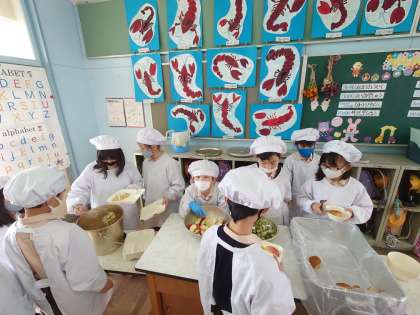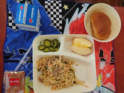 今日は焼きそばを楽しみにしている児童が多いようです。