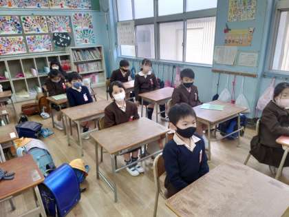 一年生おとなりでも終わりの会をしていました。