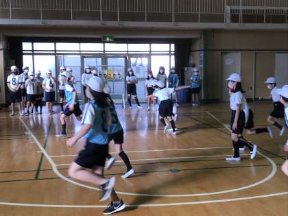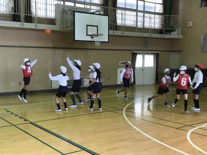 バスケットボール型ゲームの最後の仕上げとして、1組と2組で交流試合を行いました。