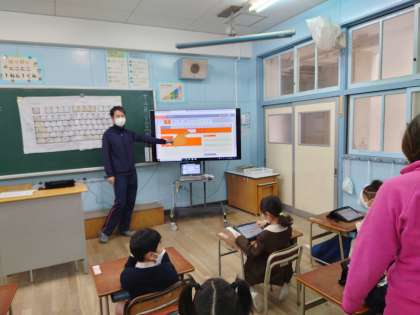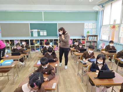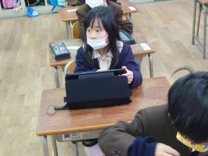 一年生がタブレットを使っていました。歓声があがるほど、とても楽しみにしていたようです。