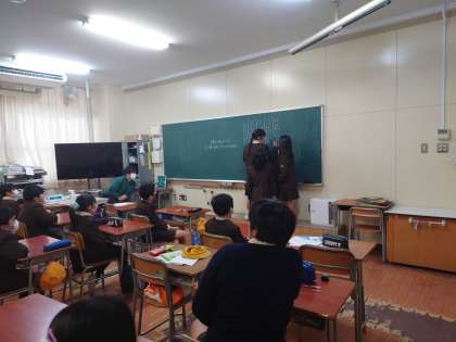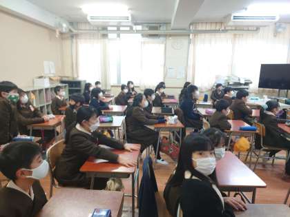 5年生は係を決めたり、国語の冬休みの宿題のまとめテストをしていました。