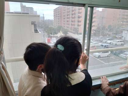 掃除の時間になりました。しっかりと掃除してくださいね。少しすると、いきなり雪が一気に振り始めてきました。思わず子どもたちも窓から少しの間のぞいていました。