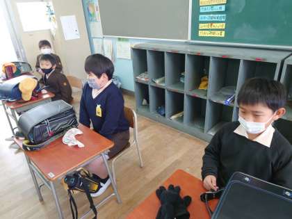 下校の時間になりました。3年生が終わりの会をしていました。今日は全学年5時間目までで下校です。また明日。