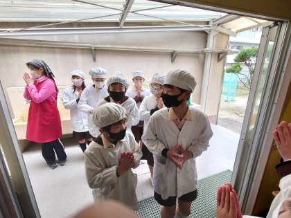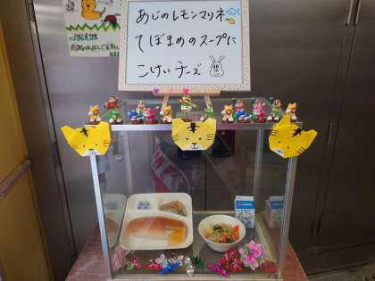 アジのレモンマリネは、レモンをすべて調理員さんがしぼってくれています。