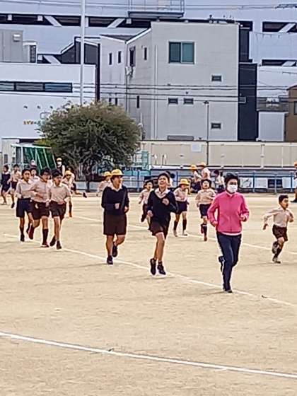 今週から15分休みにかけ足タイムが始まりました。密にならないように人数を減らして行いました。今日は、3年と6年で行いました。
