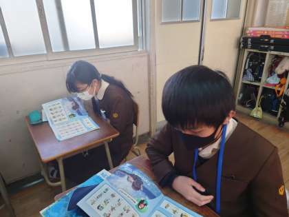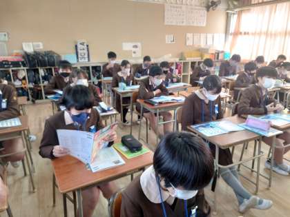 6年生が英語を学習していました。四季や動作などの単語を覚えていました。