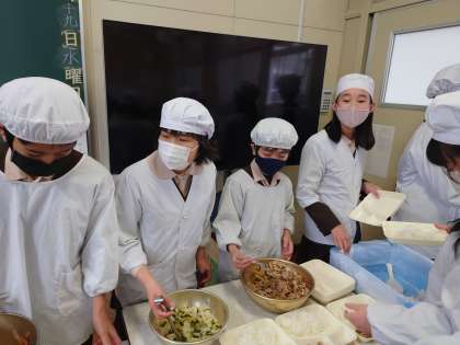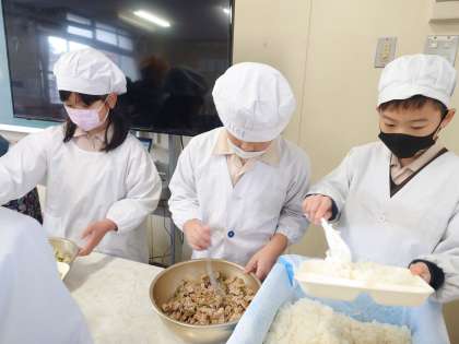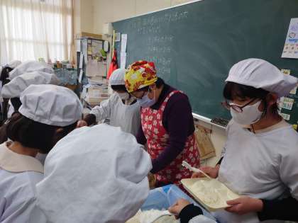 給食前、雪混じりの雨が降っていました。温かいお味噌汁がうれしい季節です。