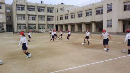 ボールタッチに取り組んだり、ドリブルの練習をしたりしながら、サッカーの基礎を楽しみながら練習しました。