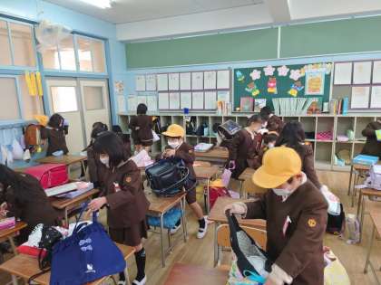 今日は、6時間目クラブ見学会があり、3年生もクラブを見るので、6時間目があります。1、2年は5時間で下校です。間もなく帰ります。現在帰る用意準備中です。