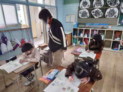 2年生おとなりでは国語をしていました。あなのやくわりという単元です。
