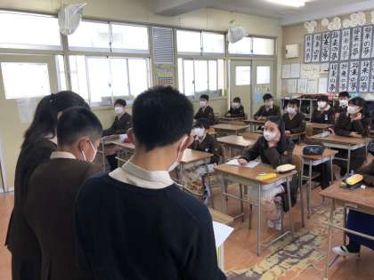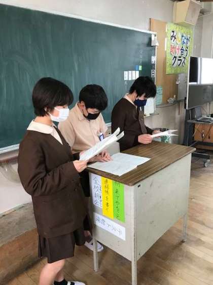 先日実施された子ども協議会(緑中学校の生徒会の人が中学校生活について教えてくれる)の内容の伝達を各クラスでしました。