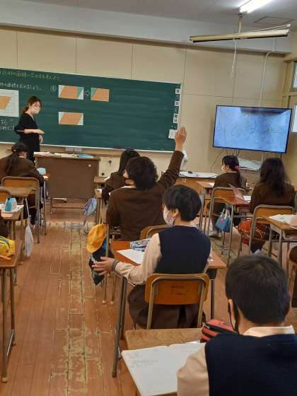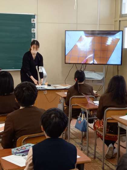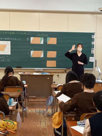 5年は算数「面積の求め方を考えよう」の単元を学習しました。今日は、平行四辺形の面積をどうしたら求められるか、今まで学習した正方形や長方形の面積の求め方を使って考えていきました。