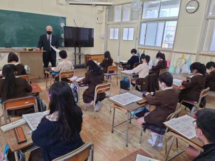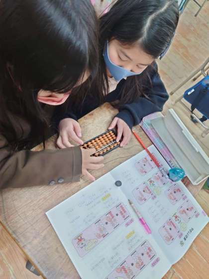 3年生がそろばんをしていました。そろばんの先生に各学級2時間ずつ教えてもらいます。