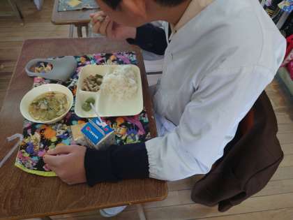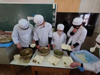 よもぎ団子にはあまいミツがついていますが、きなこをかけて食べます。