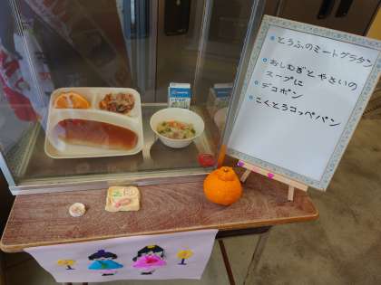 豆腐のグラタンには大豆の粒、豆腐、牛ミンチ、玉ねぎ、ピーマンが入っています。