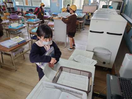 金曜日の朝です。元気に登校して準備をしています。