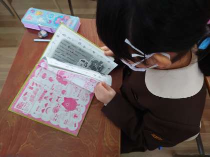 1年生、漢字プリントを終え、時間が余ったので、ナビマで国語の復習をしたり、本を読んだりしました。