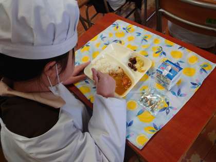 明日はパンなので、今日は令和3年度最後のご飯給食です。しっかりと食べてくださいね。
