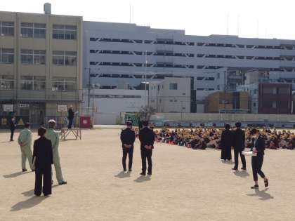 8時半になり、着任式が始まりました。たくさんの方が鶴見小学校に赴任してきました。