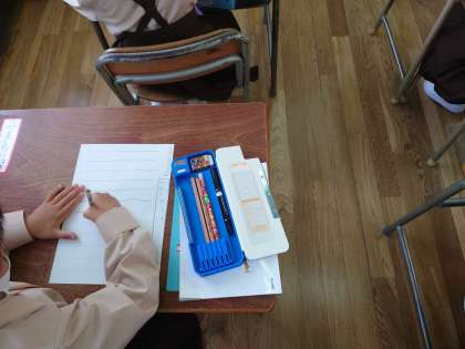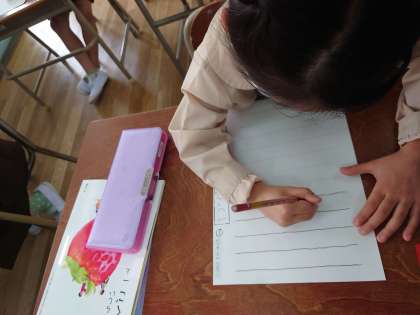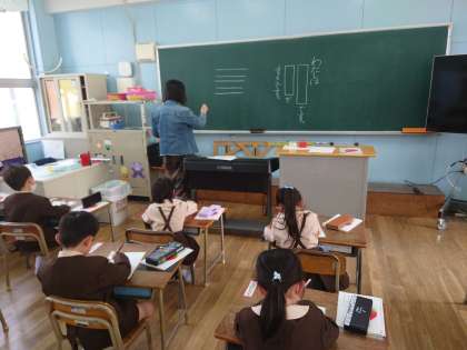 1年生が直線をなぞっていました。ゆっくりゆっくりなぞっています。
