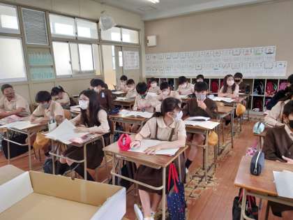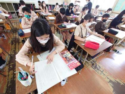 6年生学力テストに向けて過去の問題にチャレンジしていました。学力学習状況調査は、文字制限、説明や自分の考えを書くなど構成力や読解力を求められます。