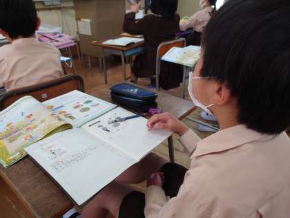 3年生が理科をしていました。理科は3年生から始まるのでみんな楽しそうです。